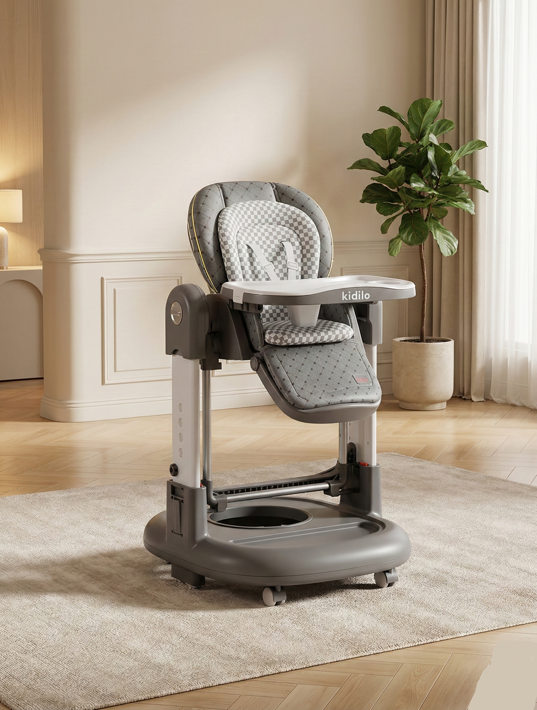 2-in-1 design: baby high chair and swing