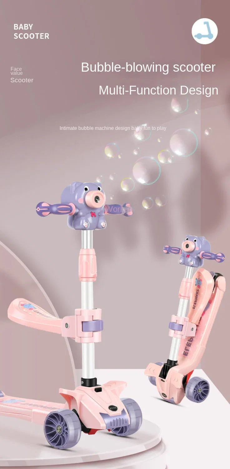 2-in-1 Kids Scooty with Seat – Portable Ride-On with Bubble Lights, Music & Fun Poems!